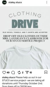 Donations will be collected outside CR206 until Oct. 2. StuCo students attending districts will help assemble the toys. The project blends creativity and service, showing how something as simple as an old shirt can be transformed into comfort and play for an animal in need.